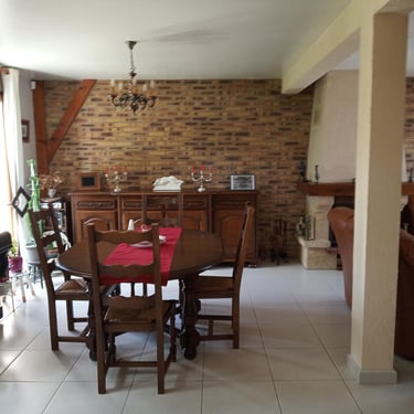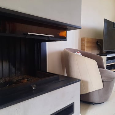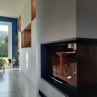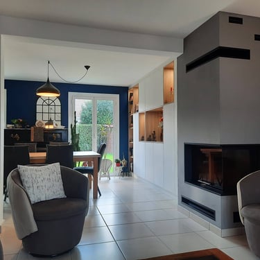 Remplacement de l'ancienne cheminée par un foyer d'angle.