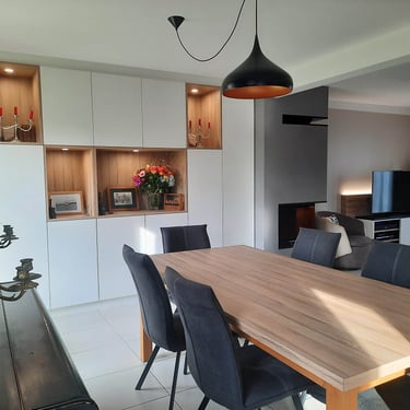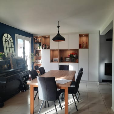 Création de meubles sur mesure qui s'adaptent parfaitement à la pièce de vie. Gain de rangements assuré.